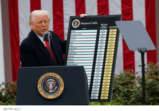 워싱턴 DC 백악관 로즈가든에서 개최된 ‘미국을 다시 부유하게’(Make America Wealthy Again) 행사에서 상호 관세 방침을 공식 발표했습니다.
